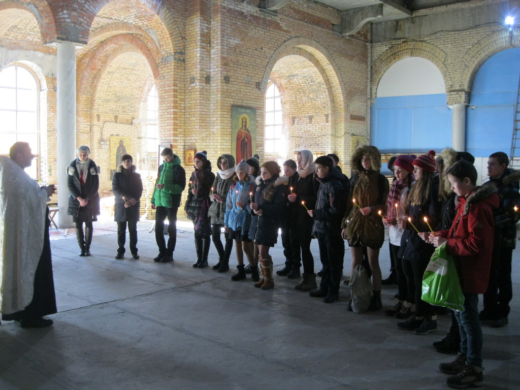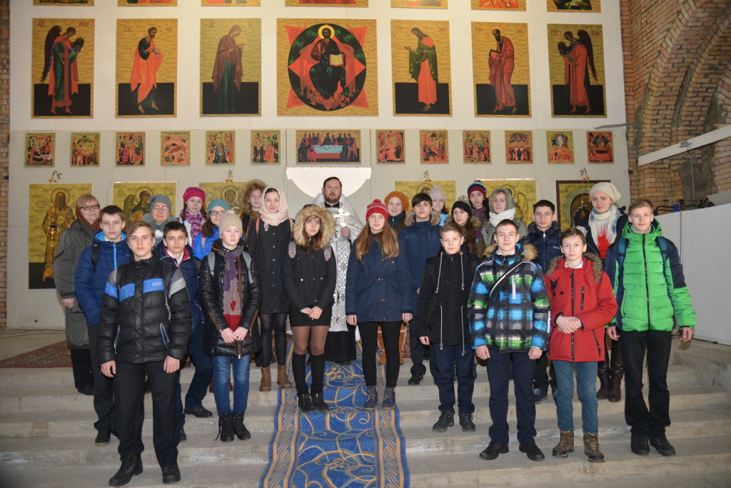 18 февраля 2016 г. Казанский храм г. Раменское посетили восьмиклассники, изучающие предмет Духовного краеведения Подмосковья и интересующиеся архитектурой и внутренним устройством православных храмов. Экскурсию для школьников по территории храмового комплекса провела катехизатор Янченкова Н.А. Далее настоятелем священником Андреем Козорезовым был отслужен благодарственный молебен. После молебна батюшка объяснил значение и смысл молитвы в жизни христианина, рассказал о Святых Таинствах Церкви. По окончании встречи для учеников в трапезной храма было организовано чаепитие с пирогами.